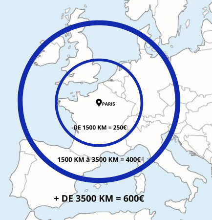 Le montant de l’indemnisation que vous pouvez recevoir est fixé par le règlement européen CE 261/2004 et dépend de la distance du vol :